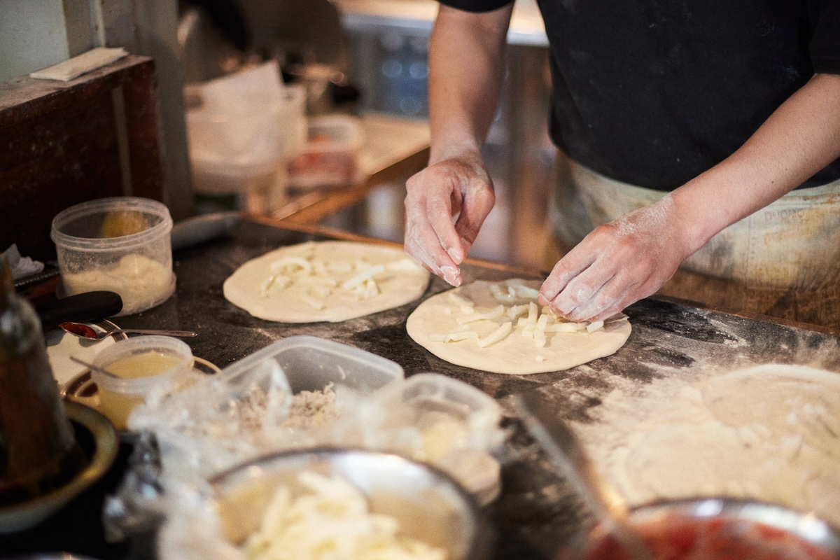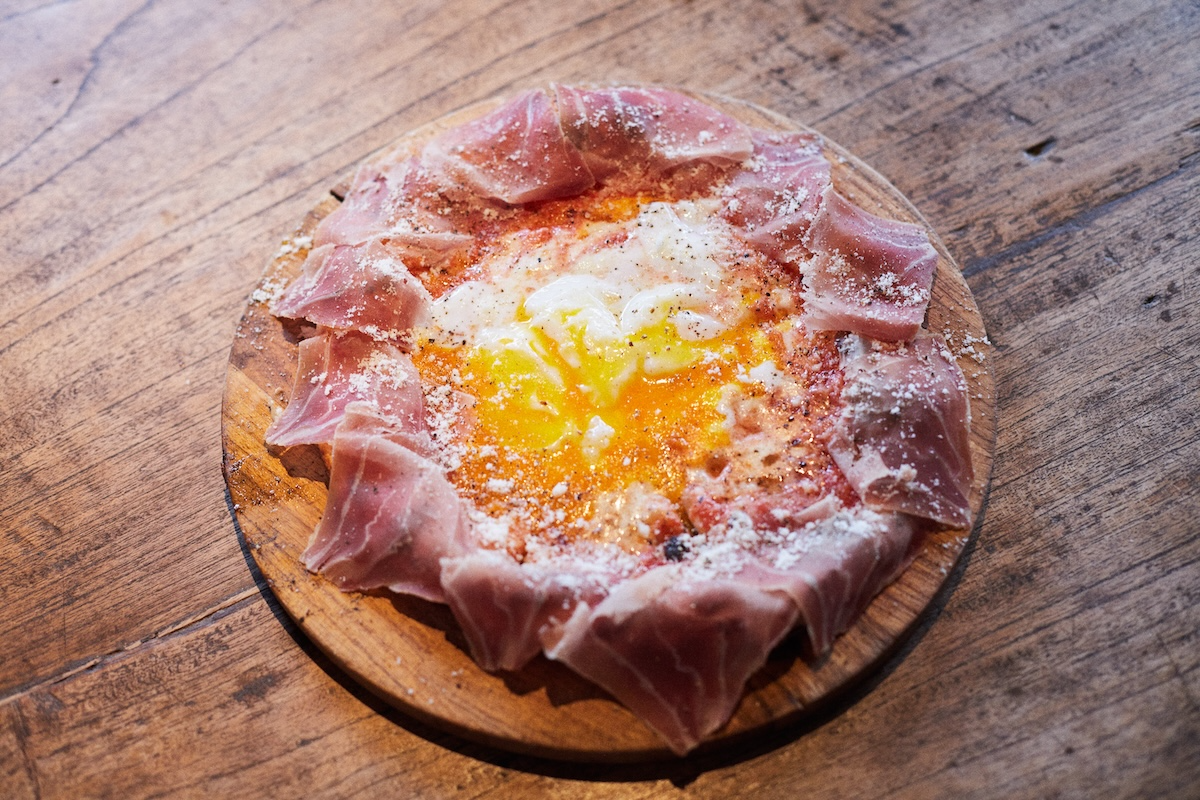The dough is made by hand using Sanuki no Yume wheat from Kagawa Prefecture and koji from Moriseikoujo on the island, then cold-fermented for four days to develop depth and character. While the Bismarck pizza (¥2,000), topped with prosciutto and a softly set egg, pairs beautifully with the chewy crust, the standout is the Setouchi Pizza with Whitebait and Shodoshima Lemon (¥1,900). Finished with green lemon olive oil, it captures the pure, concentrated flavors of the island in a single slice.