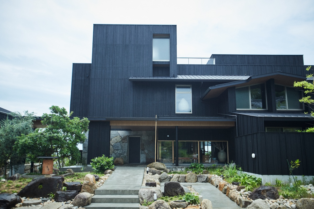 Welcomed by chic black walls and stone walls, Umiotomari is a retreat where stone defines the architecture. The entrance features Aji stone, a rare granite quarried in Kagawa Prefecture, setting a quietly powerful tone from the moment you arrive. All six guest rooms face the sea, offering uninterrupted views of the ocean and sky as they shift in color at dusk and glow again at sunrise.