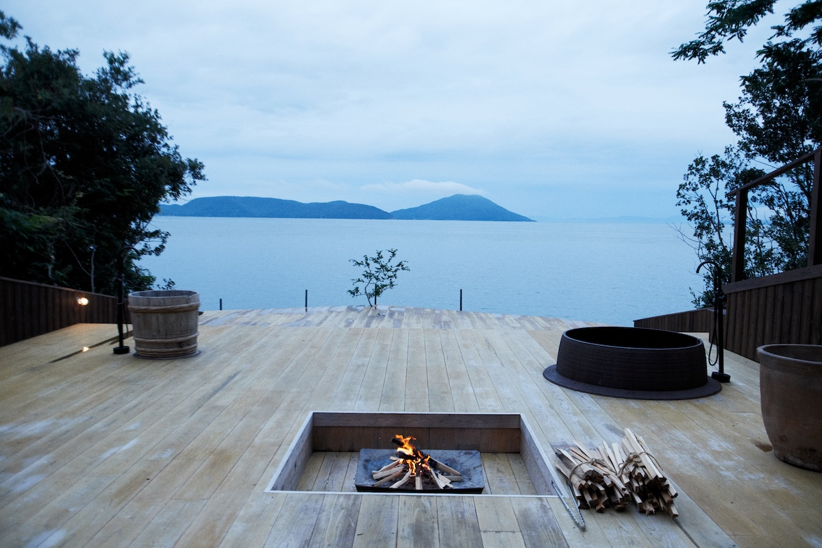 For a more private retreat, the standalone villa with sauna features a spacious terrace opening toward the Seto Inland Sea. The sauna itself is made from repurposed wooden barrels once used in Shodoshima’s soy sauce production, while four soaking baths recreated from traditional island bathtubs—Goemon-buro, Tsuchi-buro, and Kama-buro—alongside a fire pit. Enjoying alternating hot and cold baths while watching the sunrise is an exceptional experience.
