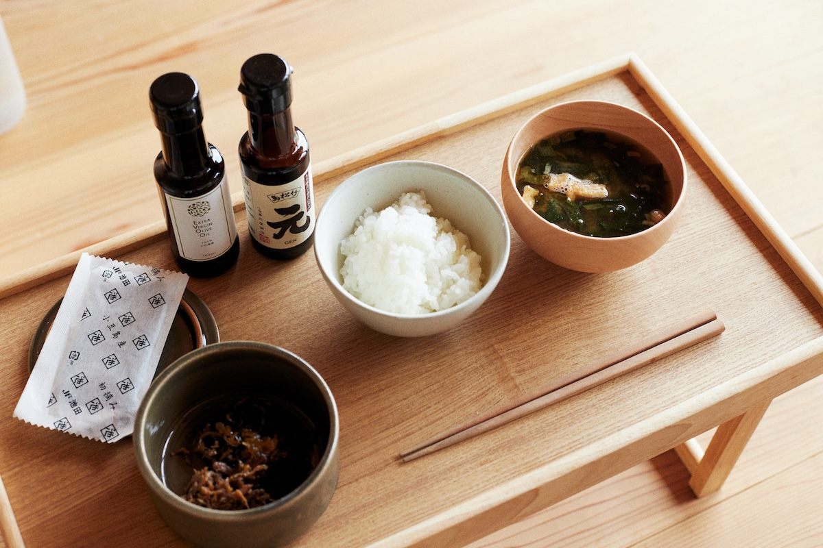 Dinner is served as a wariko bento, traditionally eaten when attending the island’s rural Kabuki performances. For breakfast, white rice grown in Shodoshima’s terraced paddies is cooked in a pot and enjoy piping hot with extra virgin olive oil from the estate’s own groves, salt, and just a drop of soy sauce—all sourced on the island. Utterly simple, yet astonishingly delicious. It’s so good that many guests end up purchasing olive oil from the on-site entrance, The GATE LOUNGE, to take home.