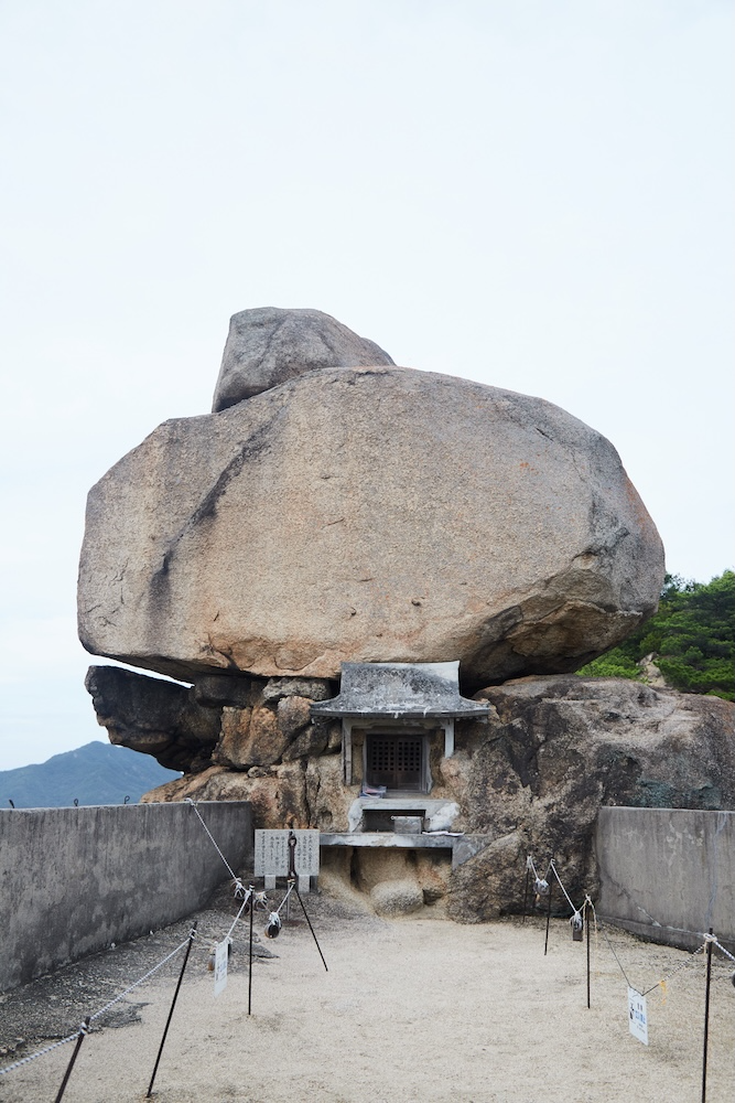 Whether the rock is a natural formation or the result of human intervention remains a mystery, but its overwhelming presence is undeniable. From the summit, sweeping views open up across the Seto Inland Sea, with islands such as Teshima and Ogijima visible in the distance. Be sure to wear comfortable, sturdy shoes when you visit.