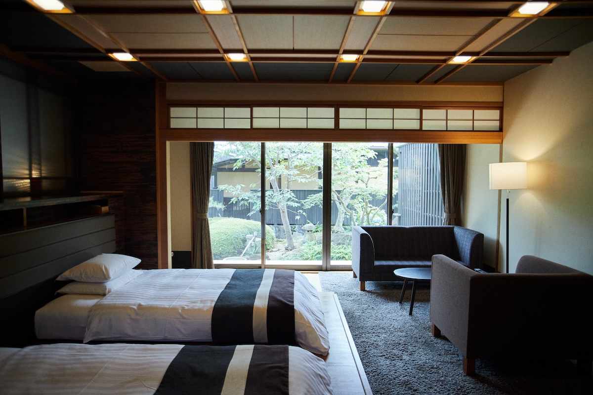 Each guest room is equipped with a private, free-flowing hot spring bath, allowing you to relax at your own pace, free from time constraints or prying eyes. The spring water is rich in metasilicic acid, known as a “beautifying” mineral, and feels wonderfully soft on the skin. After your bath, unwind further with a glass of the inn’s homemade fruit liqueur—a stay that nourishes both body and soul.