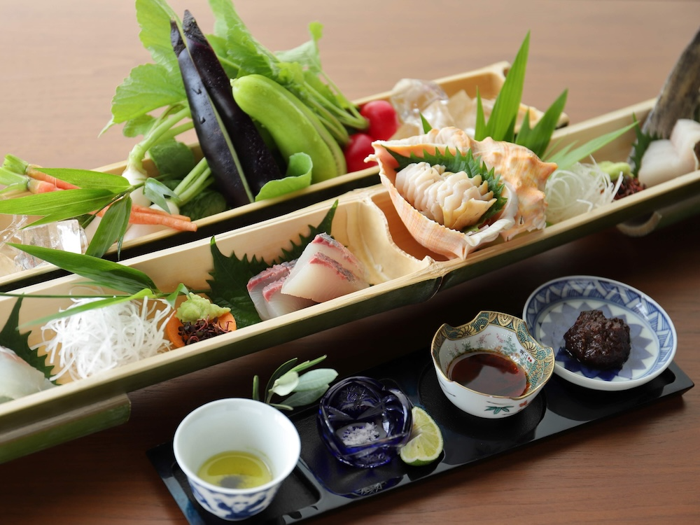 The main house and storehouse, both over 90 years old, were once run as a small inn affectionately known as “Mother’s Minshuku.” Today, the main house is registered as a Tangible Cultural Property, where guests can enjoy a refined soy sauce kaiseki featuring locally produced soy sauce. Fresh fish and vegetables from the Seto Inland Sea are brought to life with Shodoshima’s signature wooden-barrel fermented soy sauces. In particular, the sashimi served with four distinct soy sauce —including moromi sauce and a rare double aged variety—is an exceptional dish found only on this island.